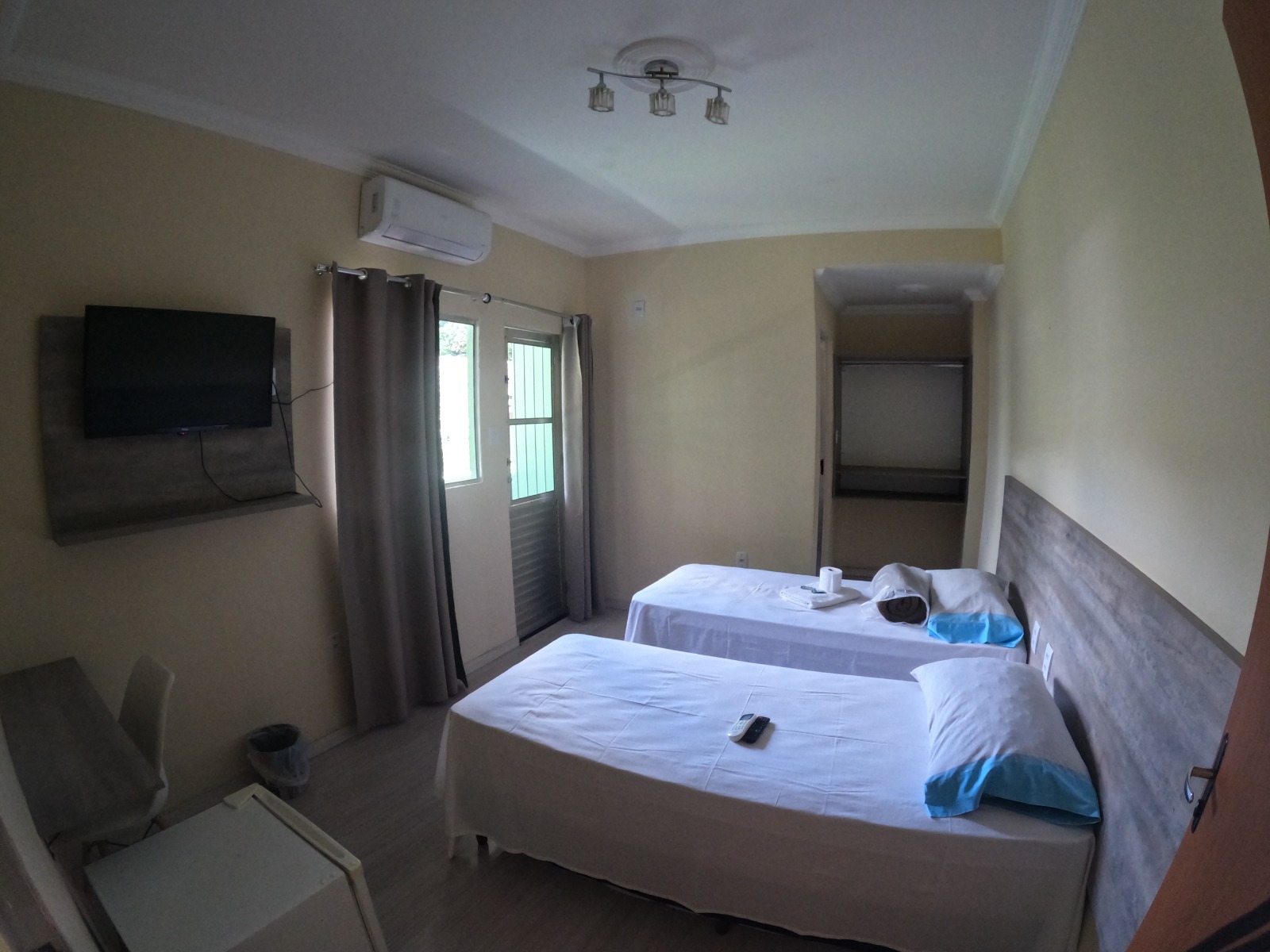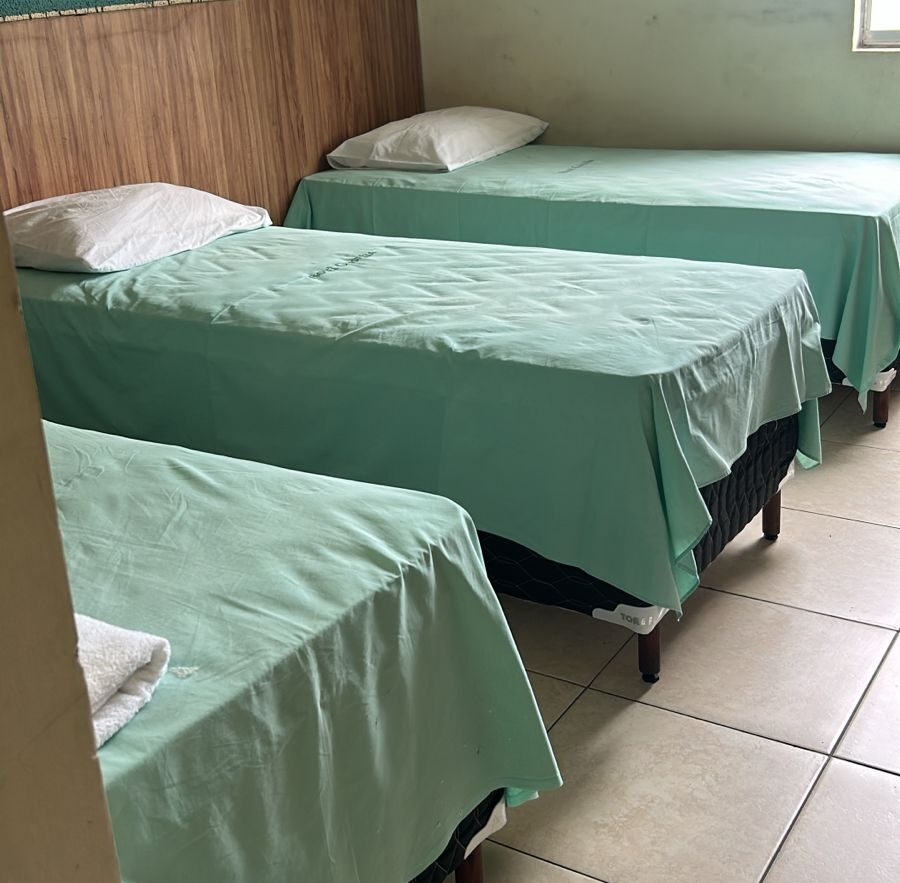 Contamos com vários quartos e recebemos hóspedes individuais, casais, equipes e grupos — inclusive acomodações para até 8 pessoas no mesmo quarto.